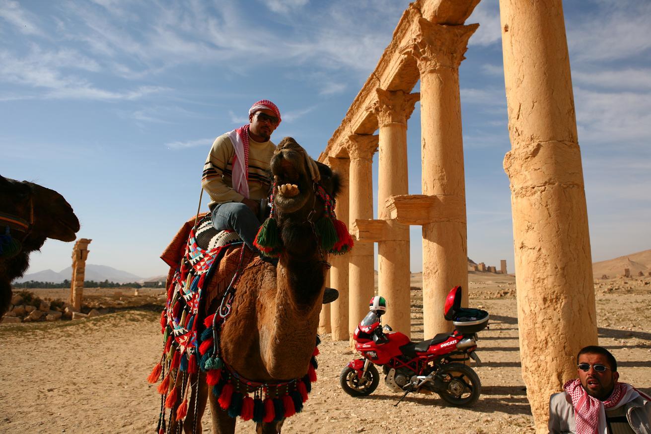 Giovedi 29/11/2007 siamo andati a Damasco (N 33 30,554' E 36 17,730") seguendo la strada che costeggia il confine con l'Iraq. Li' abbiamo ritrovato per caso George e con lui altri tre motociclisti. Ora in tutto siamo in 8, da 8 paesi diversi e ciascuno con le proprie storie da raccontare. Werner (Germania) e Michael (USA) vanno a Dubai attraverso l'Etiopia. Chris (Francia) e Kevin (Australia) arrivano dalla Thailandia e ancora non sanno bene dove andare. Tom (Canada) e George (UK) fanno quasi il nostro stesso percorso fino a Citta' del Capo, ma con tempi diversi.